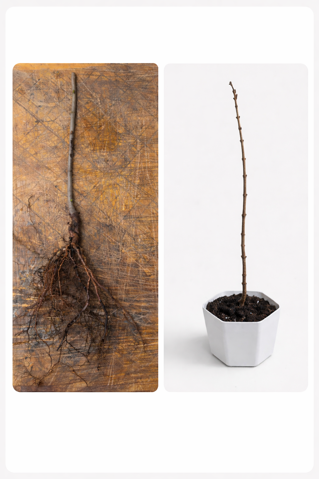 Саженец: укоренённый, крепкий (возраст и размер зависят от вида/сорта)